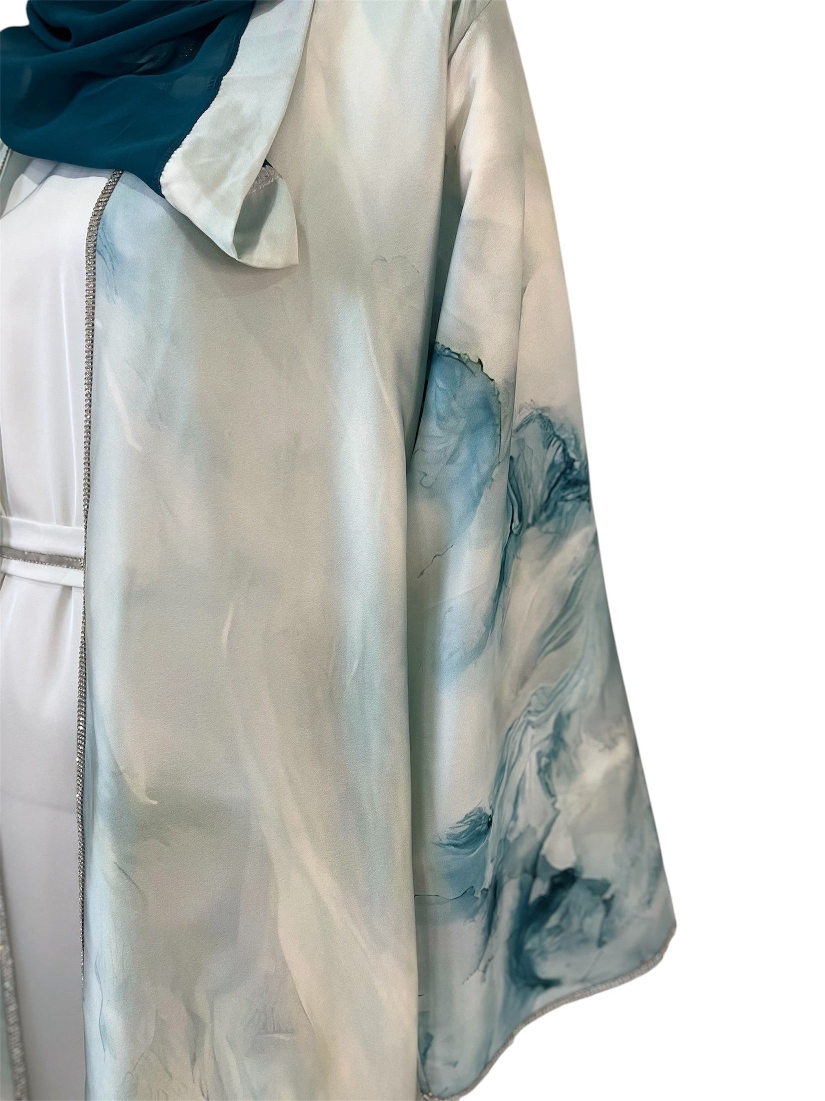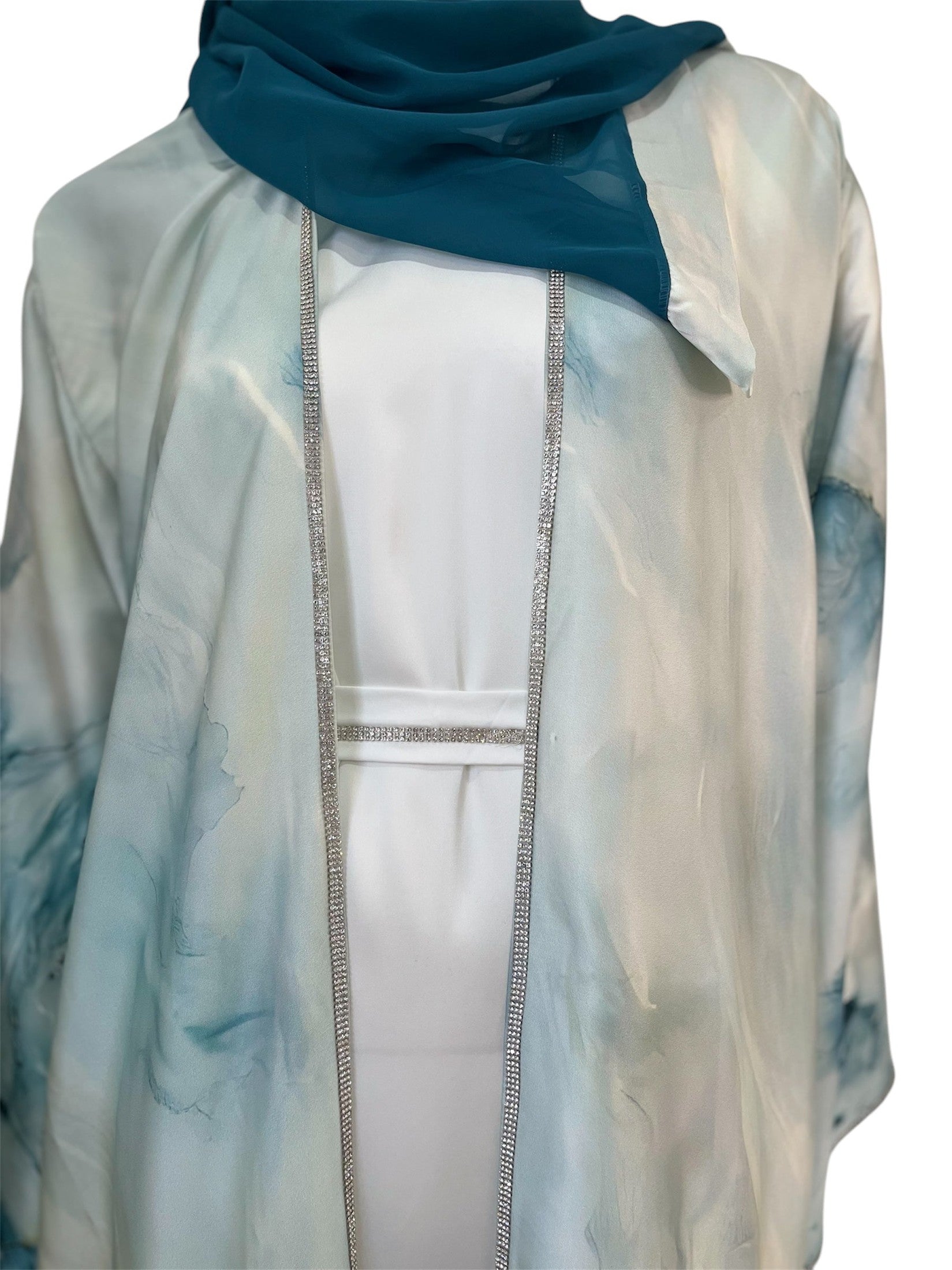 The Ibtesam Abaya is crafted from luxurious satin, providing a soft and comfortable feel against the skin. This set includes the abaya, inner layer, and hijab, all designed to ensure a cohesive and modest ensemble. Its high-quality fabric delivers breathability and ease of movement, making it an excellent choice for daily wear with a refined finish.
